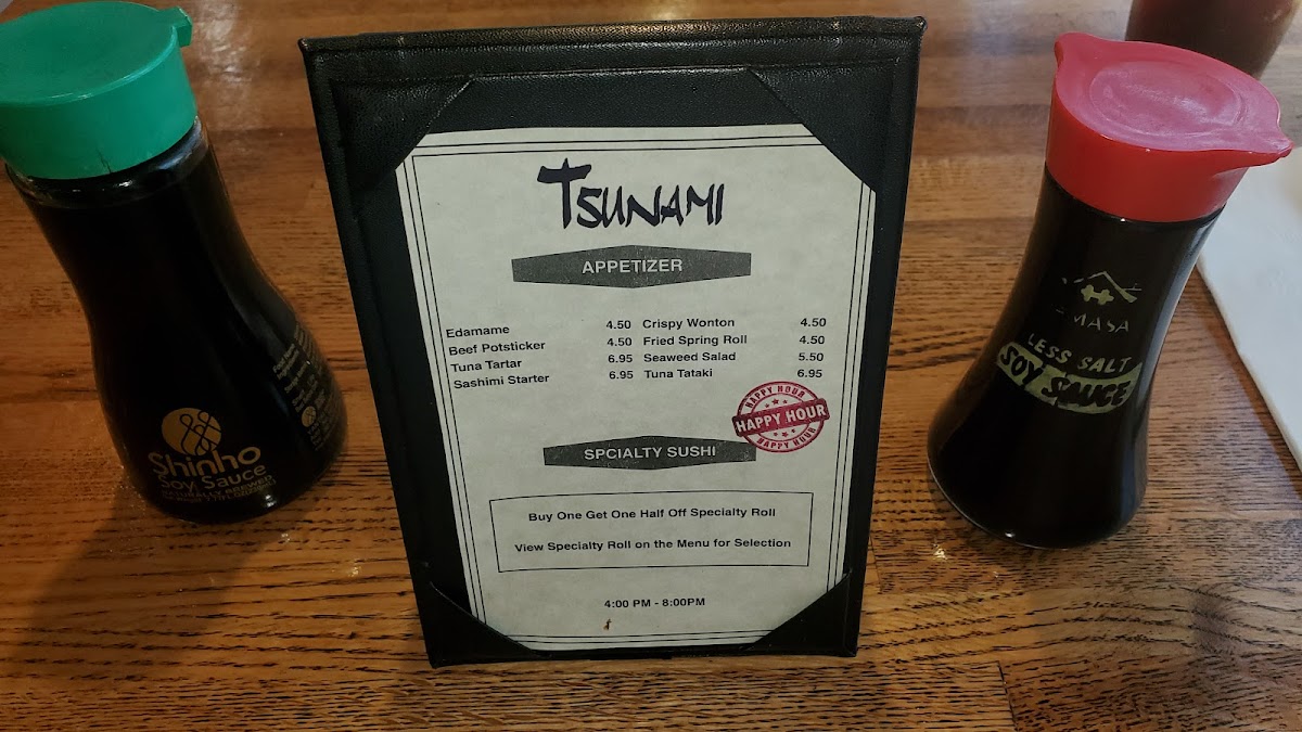 Sushi (salmon, tuna, yellowtail, shrimp), Sashimi (tuna, yellowtail, salmon, white fish)and with a tuna roll or a California roll