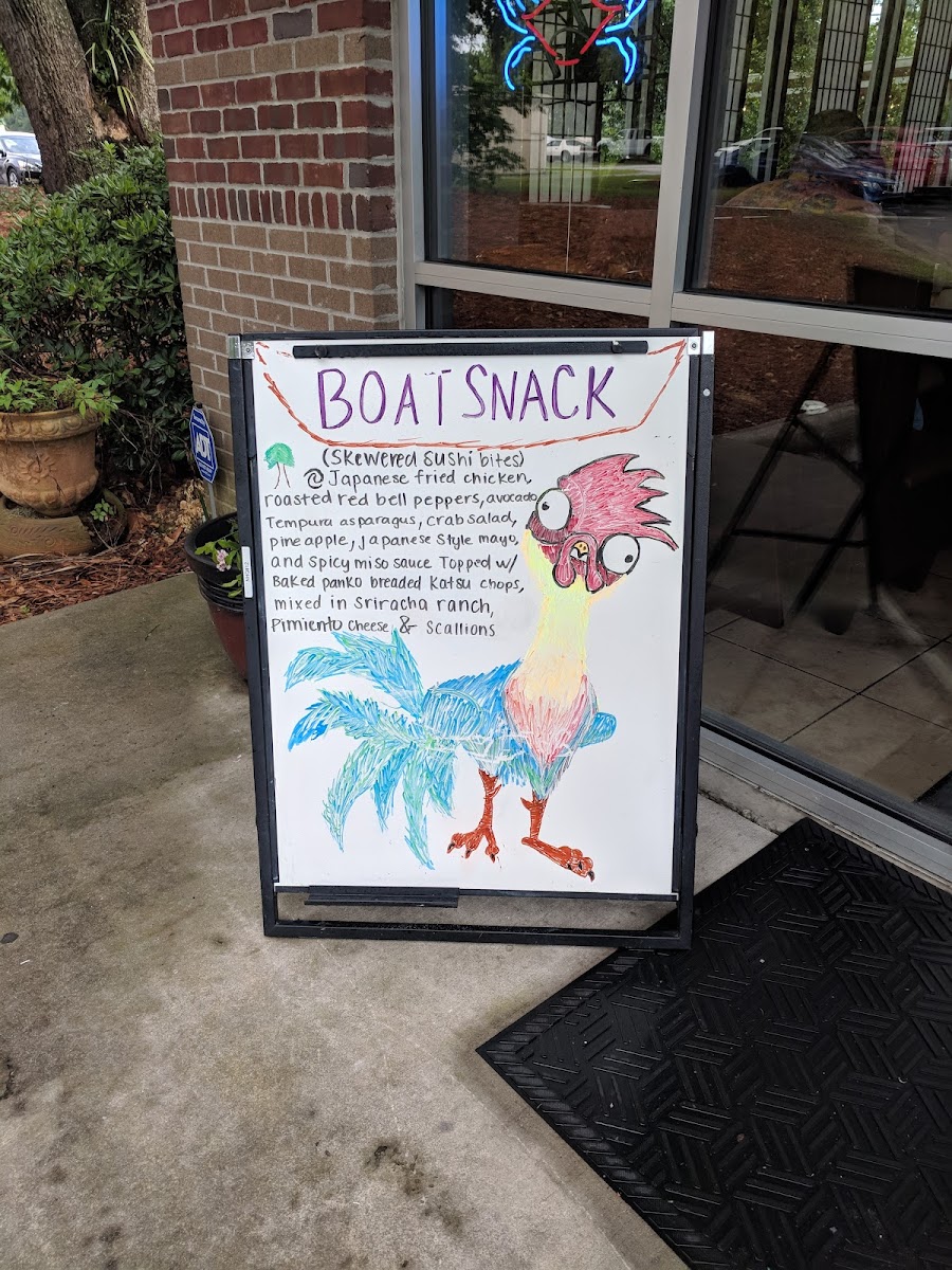 Tempura Shrimp, cucumber, crab, tempura flakes topped with shrimp, avocado with a drizzle of eel sauce, spicy mayo and Japanese mayo